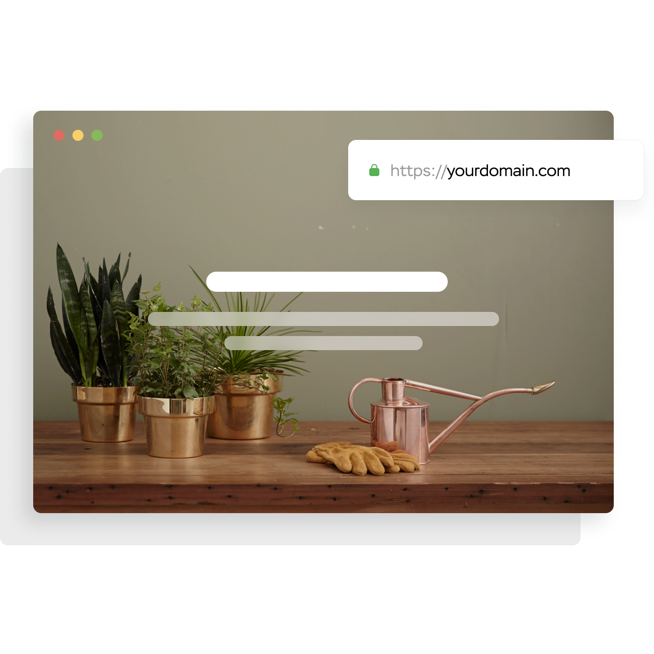 Forconi markën tuaj me një domen personal. Përdorni atë që tashmë keni ose regjistroni një të ri me ne. Të gjithë domenet marrin HTTPS automatikisht, falas.