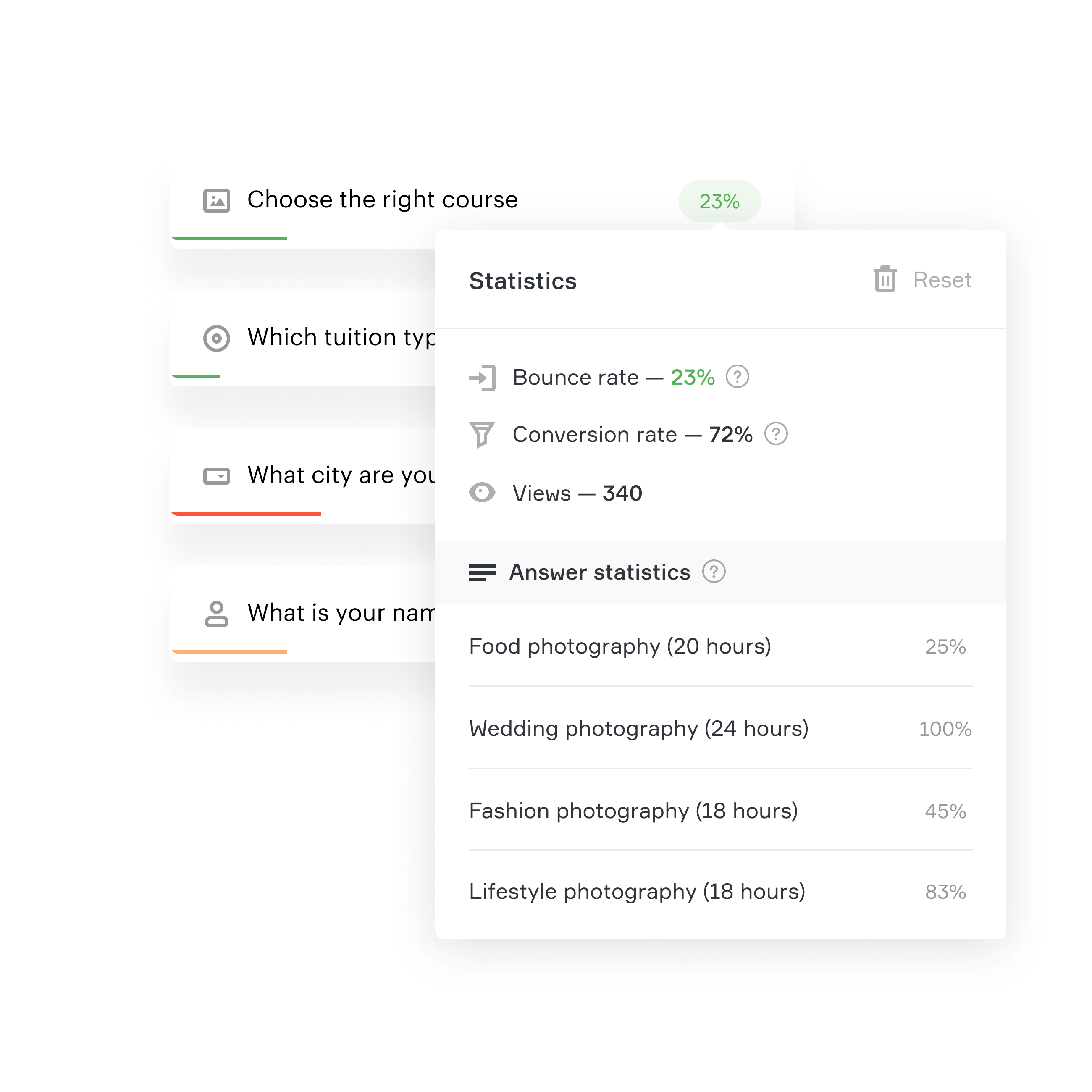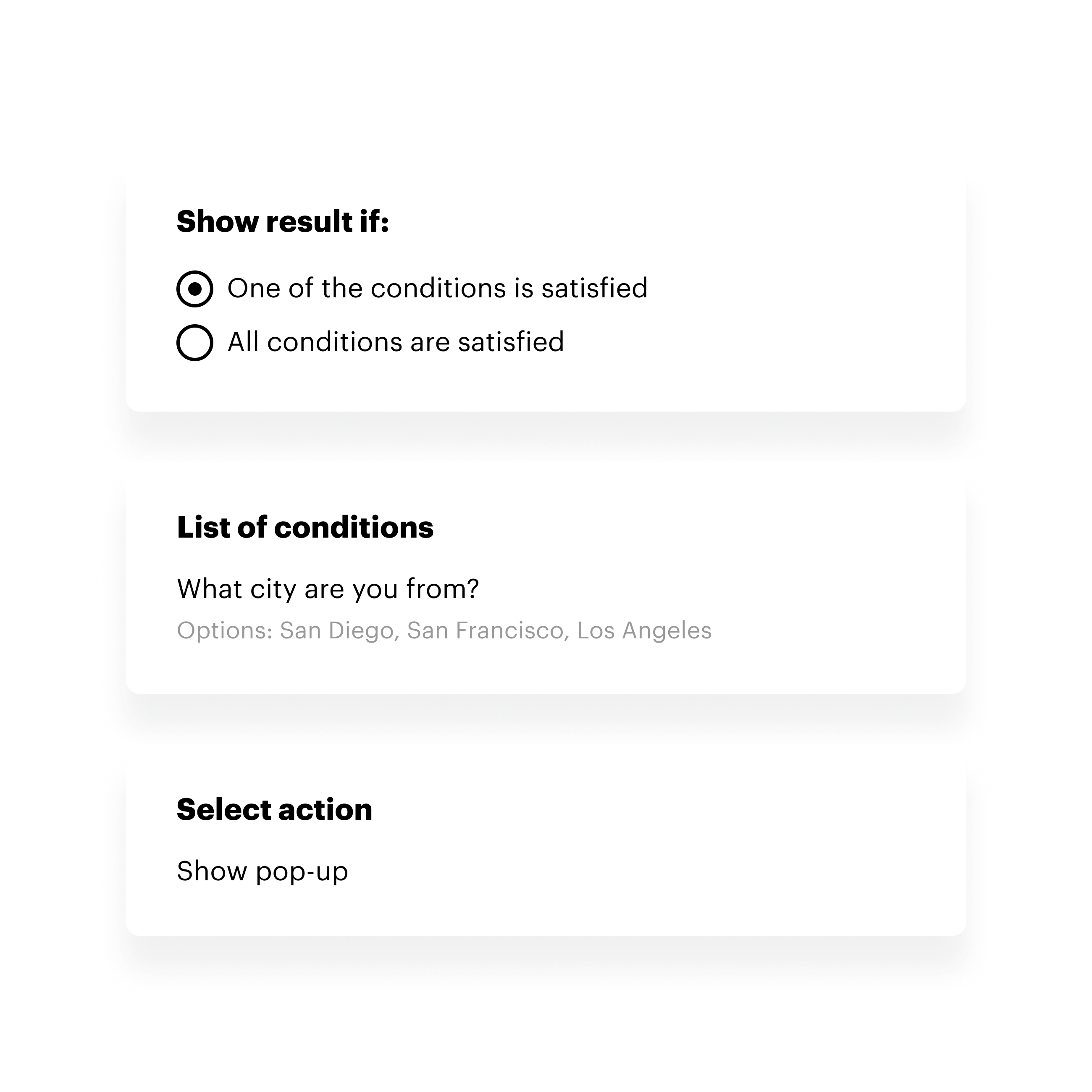 Personalizo kuizet për çdo vizitor: bëj pyetje në varësi të përgjigjeve të dhëna. Vizitorët nuk do të duhet të përgjigjen për pyetje të parëndësishme, dhe ju do të mësoni informacione më të detajuara.
